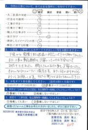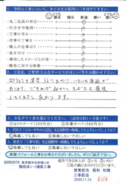 丸二ではリフォーム工事完了後、お客様にアンケートのご協力をお願いしており、いただいた声をサービスの改善・向上に役立てて参りました。