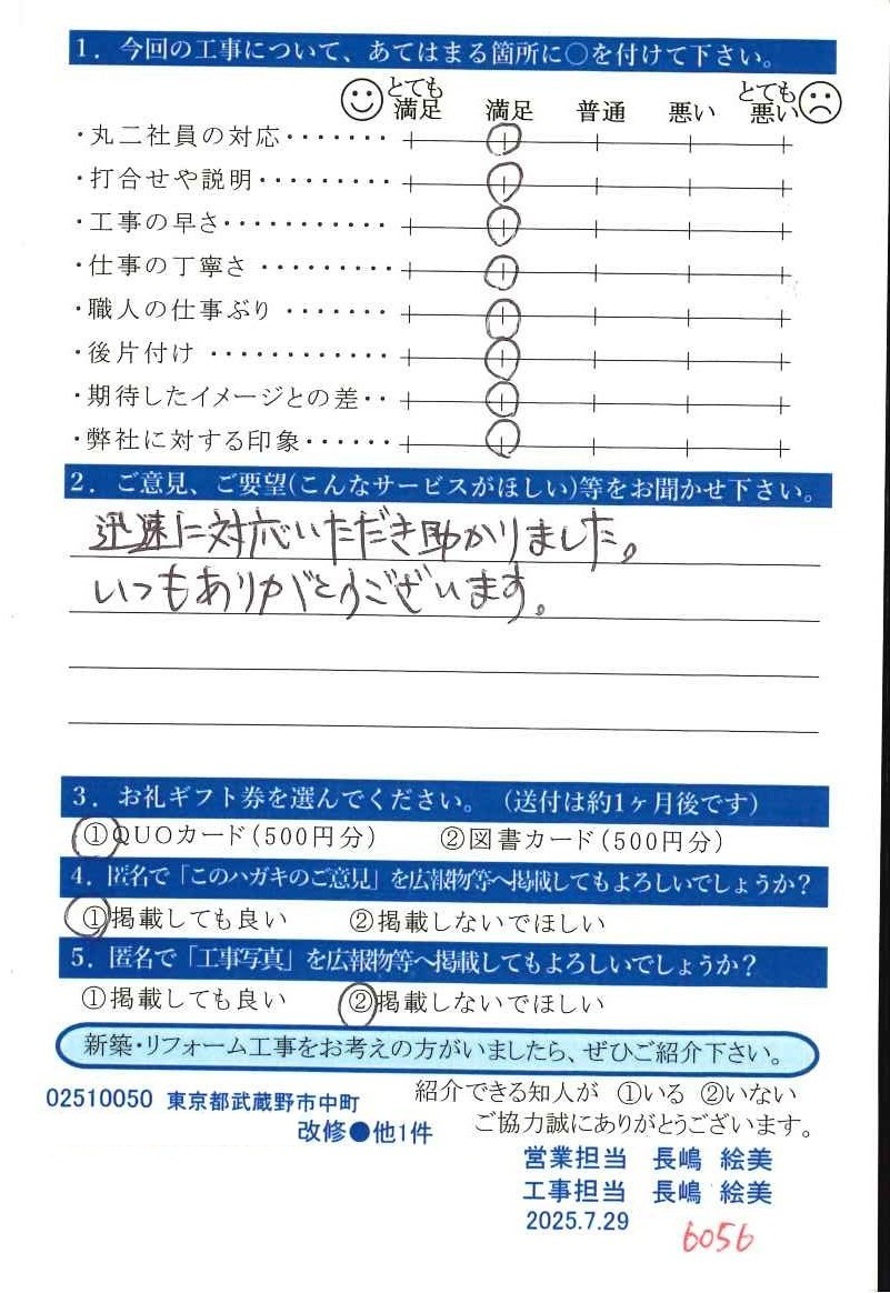 迅速に対応いただき助かりました。いつもありがとうございます。