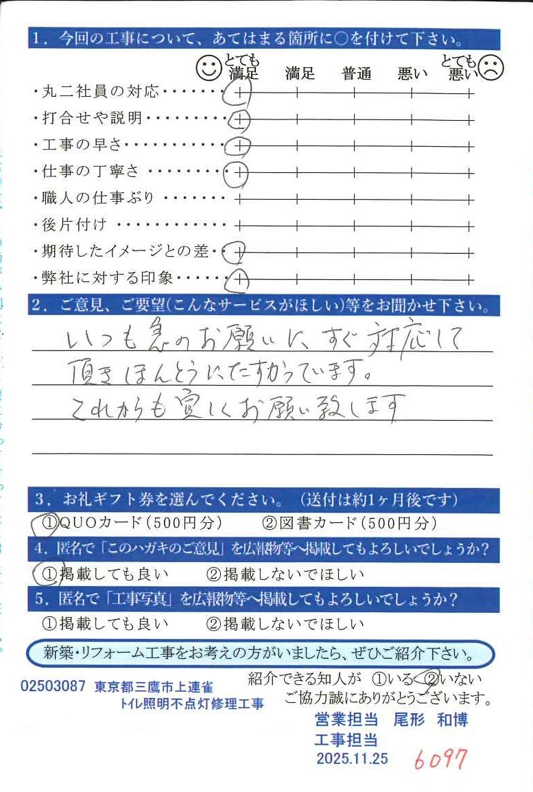 いつも急のお願いにすぐ対応して頂きほんとうにたすかっています。これからも宜しくお願い致します。