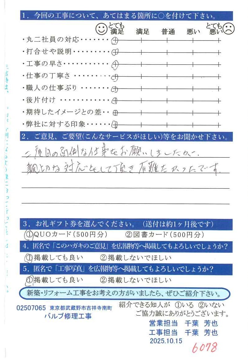 二度目の面倒な仕事をお願いしましたが親切な対応をして頂き有難かったです。