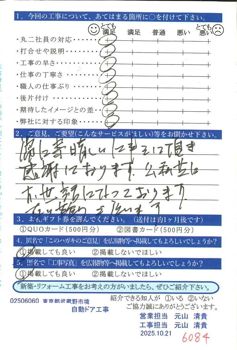 常に素晴らしい仕事をして頂き感謝しております。公私ともにお世話になっております。有難うございます。