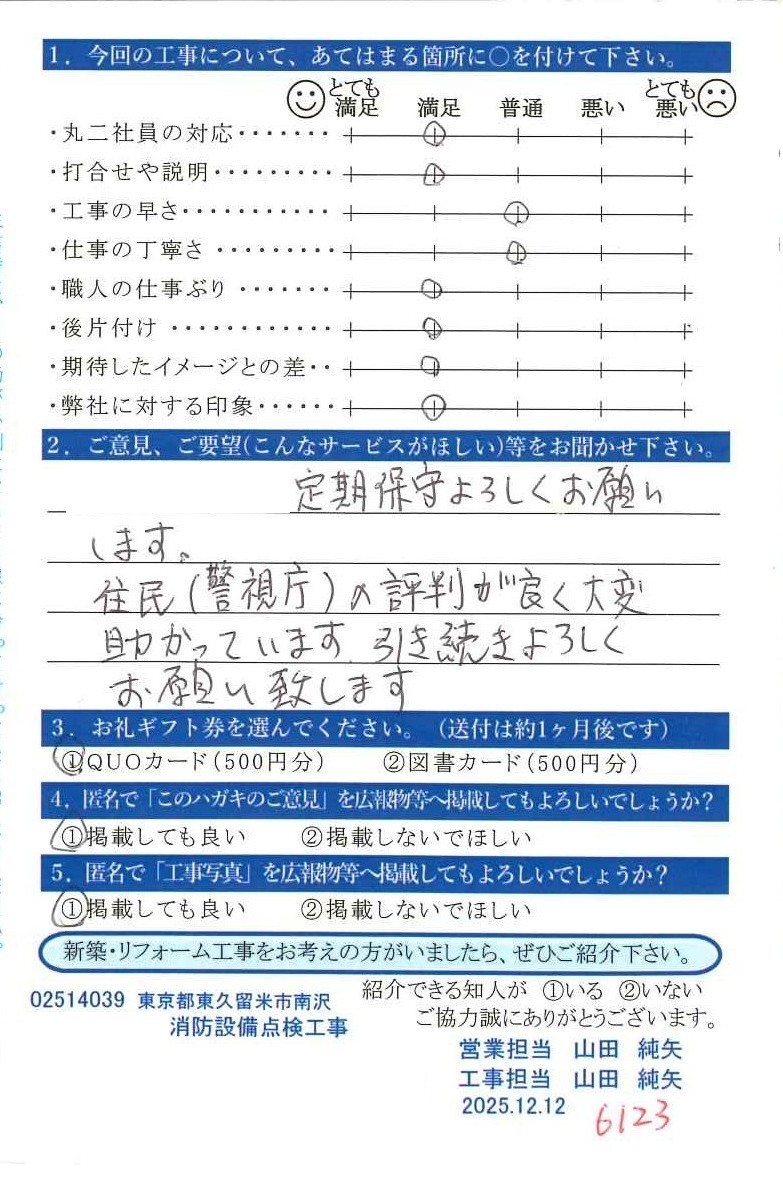 定期保守よろしくお願いします。住民(警視庁)の評判が良く大変助かっています。引き続きよろしくお願い致します。