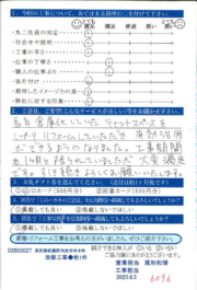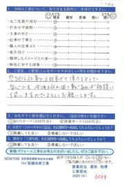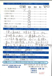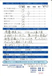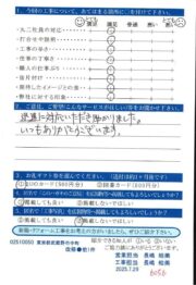 丸二ではリフォーム工事完了後、お客様にアンケートのご協力をお願いしており、いただいた声をサービスの改善・向上に役立てて参りました。